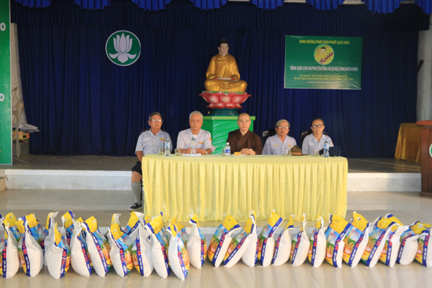 150 suất quà bao gồm gạo và tịnh tài với tổng trị giá 35 triệu đồng do ĐĐ. Thích Thông Đạo hỗ trợ cùng sự đóng góp của Đội TNV máu sống GĐPT Đà Nẵng đã được trao tận tay các HTr – Đs có hoàn cảnh khó khăn của các đơn vị trong niềm hoan hỷ của những người con Phật nhân mùa Đản sanh PL.2561 – DL.2017.