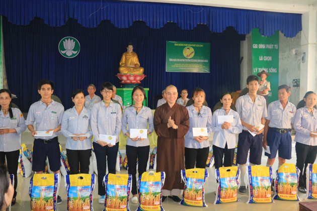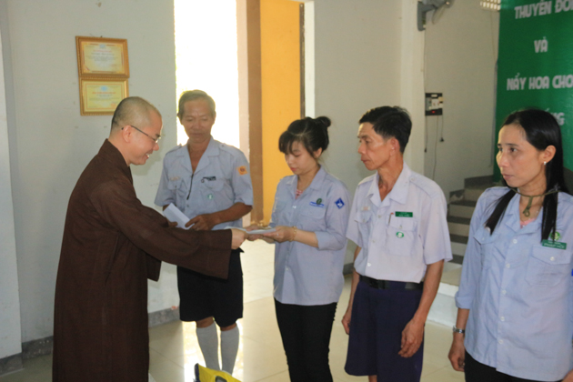 Chứng minh và tham dự buổi trao tặng quà có ĐĐ. Thích Thông Đạo – UV HĐTS, Phó ban kiêm Chánh thư ký BTS GHPGVN Tp Đà Nẵng, Trú trì chùa Bà Đa.