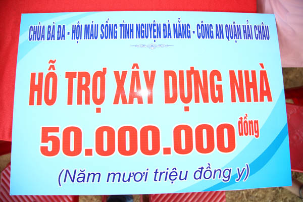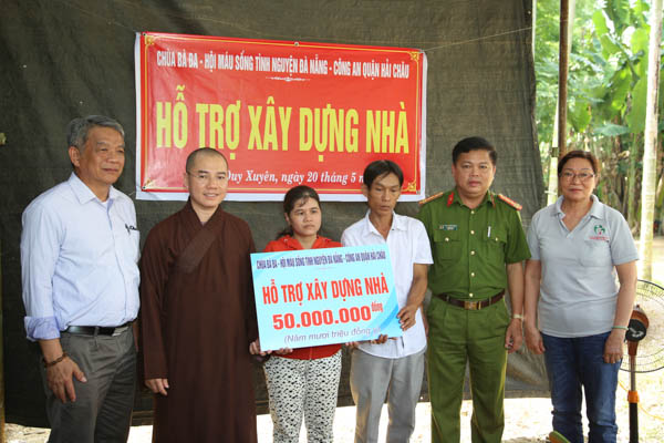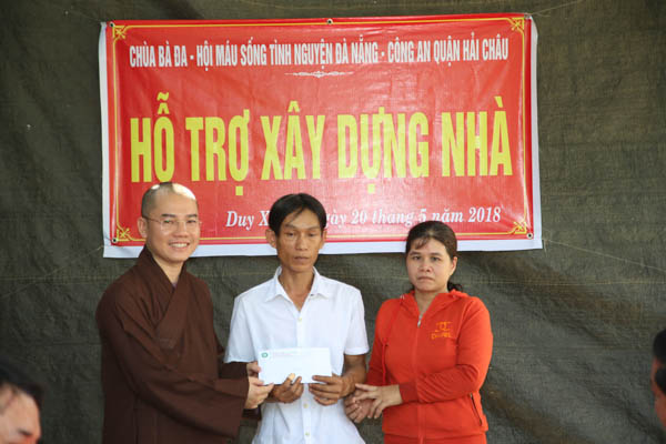 Được biết gia đình bà Chanh là hộ nghèo tại địa phương, điều kiện kinh tế khó khăn, Chùa Bà Đa và Đội TNV máu sống GĐPT Đà Nẵng đã hỗ trợ 50 triệu đồng để giúp gia đình xây ngôi nhà ổn định nơi ở, yên tâm làm ăn vươn lên thoát nghèo.
