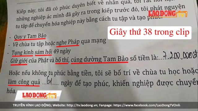 Mặc dù Báo Lao động chỉ nhằm khai thác việc “thỉnh vong”, “xuống tiền” và “làm không công” theo kiểu thông tin giật gân, một chiều, xuyên tạc và phỉ báng nhưng chứng cứ về phương pháp tu tập theo Phật pháp nói trên của Chùa Ba Vàng đã được chính Báo Lao động “ngược gió tung bụi” để lộ ra ở giây thứ 38 trong clip có tính chất “buộc tội” mang tên: “Gọi vong” chùa Ba Vàng – bí ẩn nguồn thu trăm tỉ”.