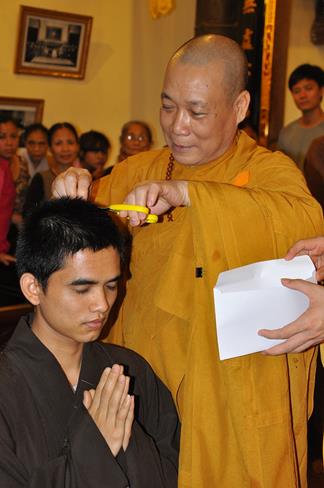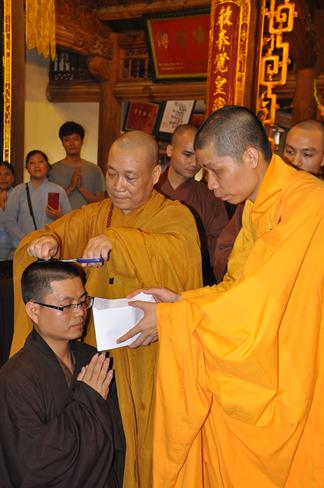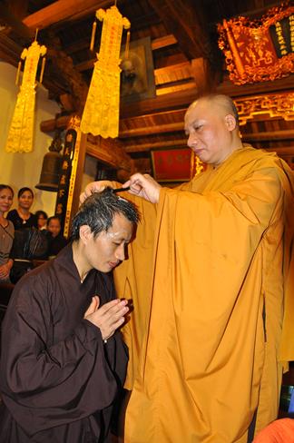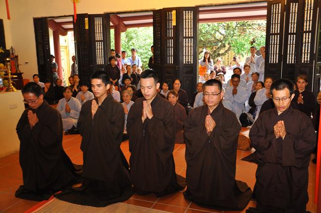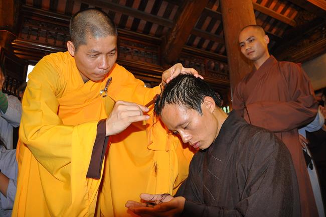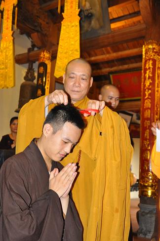 Vì lẽ đó, trong không khí hướng về ngày kỉ niệm Đức Bồ Tát Quán Thế Âm xuất gia 19-9, Hòa thượng Thích Bảo Nghiêm đã làm lễ thế phát xuất gia cho 5 thiện nam: Mai Văn Hào – pháp danh Quảng Hậu, Trần Tiến Đạt – pháp danh Quảng Kim, Sái Văn Ngọc – pháp danh Tục Anh, Vũ Đức Đông – pháp danh Tục Quỳnh, Nguyễn Văn Hùng – pháp danh Nhật Hiếu.