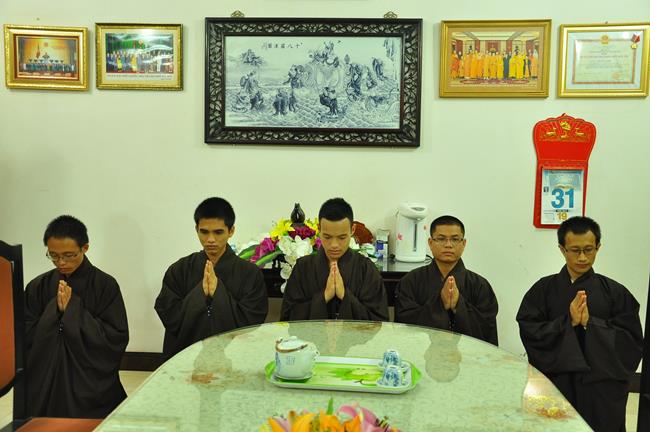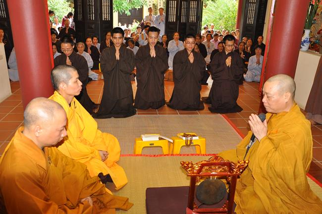 Sau khi dâng lời phát nguyện xuất gia, 5 bạn trẻ đã được Hòa thượng làm lễ quy y, trao truyền Năm Giới. Đồng thời Hòa thượng đã khuyến tấn các chú tiểu tinh tiến tu hành, nghiêm trì giới luật, thực hành đúng hạnh nguyện của Người xuất gia và luôn lấy việc Học – Tu làm quan trọng nhất.