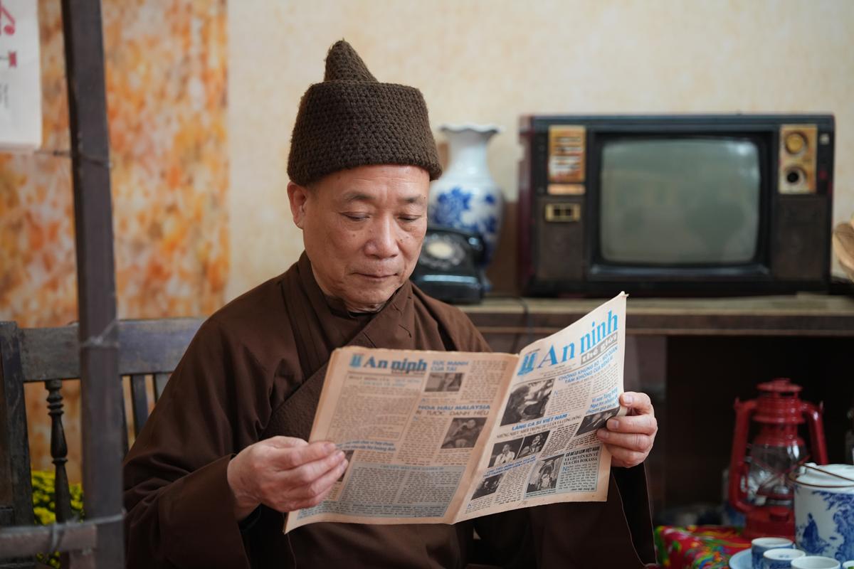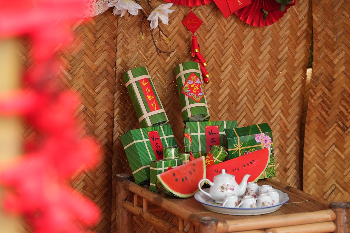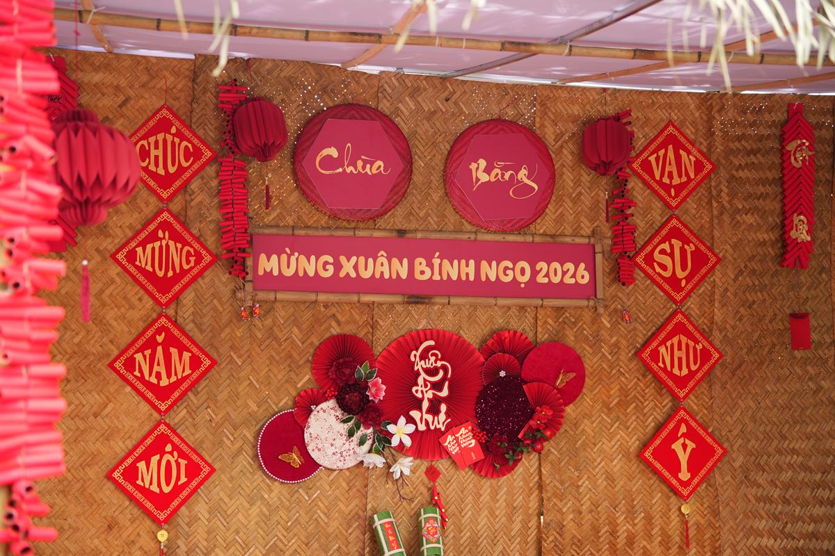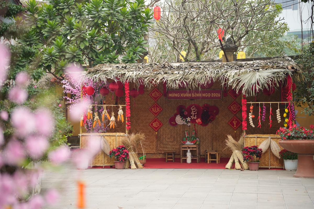 Điểm nhấn đặc biệt của mùa xuân năm nay là những “góc Tết xưa” được tái hiện công phu trong khuôn viên chùa. Bánh chưng xanh, bộ ấm tích, tranh Đông Hồ, sạp báo cũ, cành đào cành mai đặt cạnh bộ bàn ghế gỗ mộc mạc… tất cả gợi nhắc sinh động không khí Tết cổ truyền của làng quê Bắc Bộ thuở xưa. Không gian ấy không chỉ mang giá trị thẩm mỹ, mà còn như một lời nhắc nhở nhẹ nhàng về cội nguồn văn hóa, giúp Phật tử và du khách – đặc biệt là thế hệ trẻ – thêm trân quý những điều tưởng chừng đã lùi xa trong nhịp sống hiện đại.