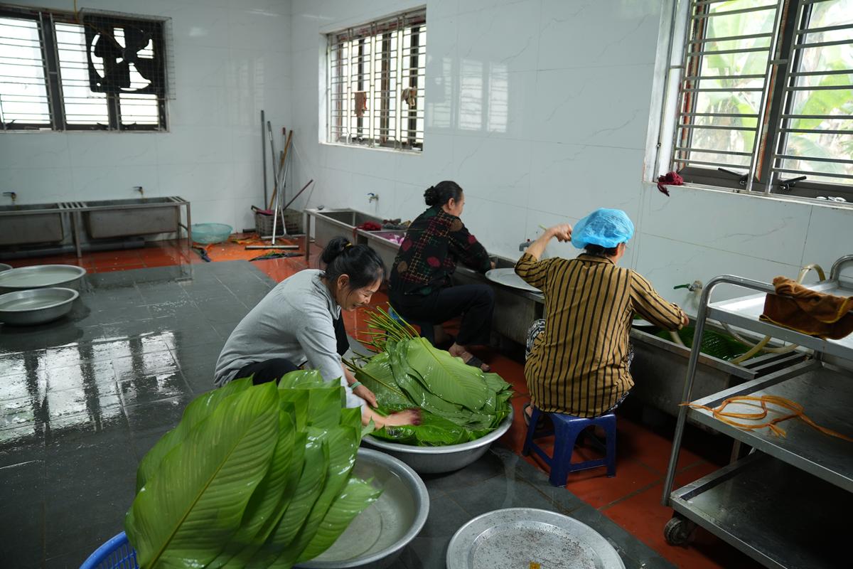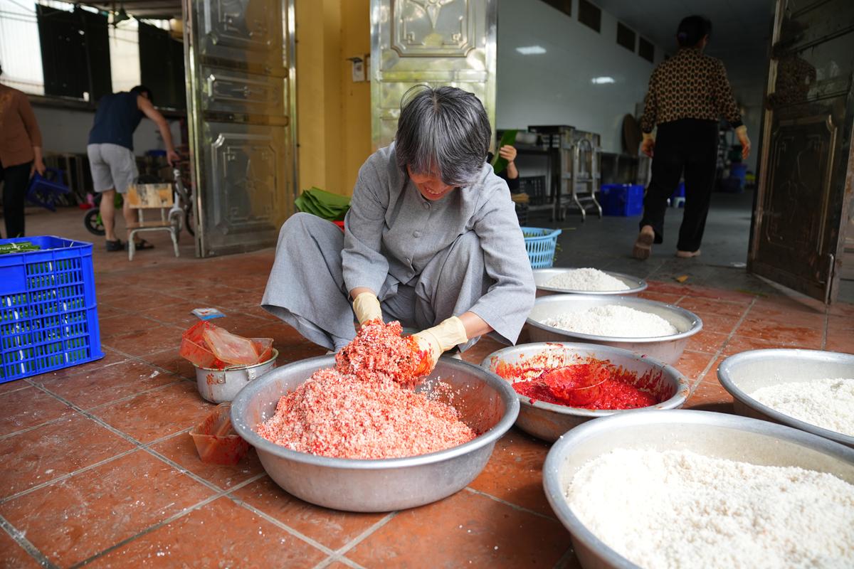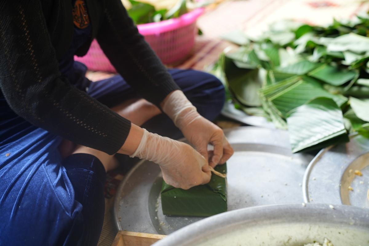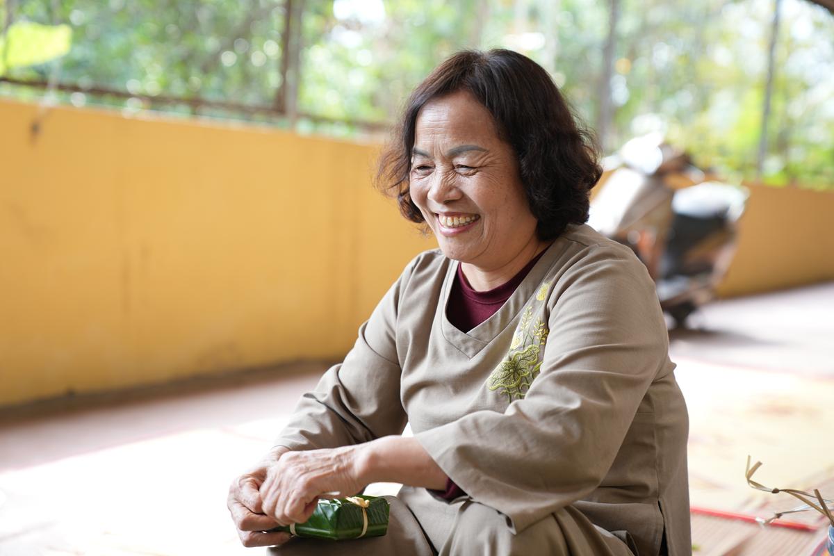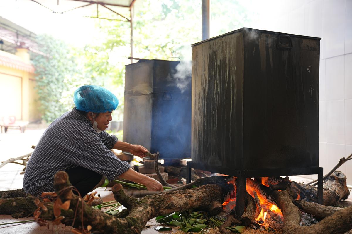 Đặc biệt, nơi góc bếp chùa Bằng, không khí Tết cổ truyền hiện hữu rõ nét và ấm áp hơn bao giờ hết. Bên bếp lửa hồng rực, chư Tăng cùng Phật tử quây quần gói bánh chưng chay, tay thoăn thoắt xếp lá dong, đong gạo nếp, đỗ xanh trong tiếng trò chuyện rì rầm thân ái. Mùi nếp mới quyện cùng hương lá dong, khói bếp lan tỏa trong tiết trời se lạnh cuối năm, gợi lên cảm giác sum vầy, chan chứa nghĩa tình. Những nồi bánh chưng đỏ lửa suốt đêm không chỉ nấu chín bánh Tết, mà còn hun đúc tinh thần lục hòa, sẻ chia và lòng tri ân đối với tổ tiên, nguồn cội.