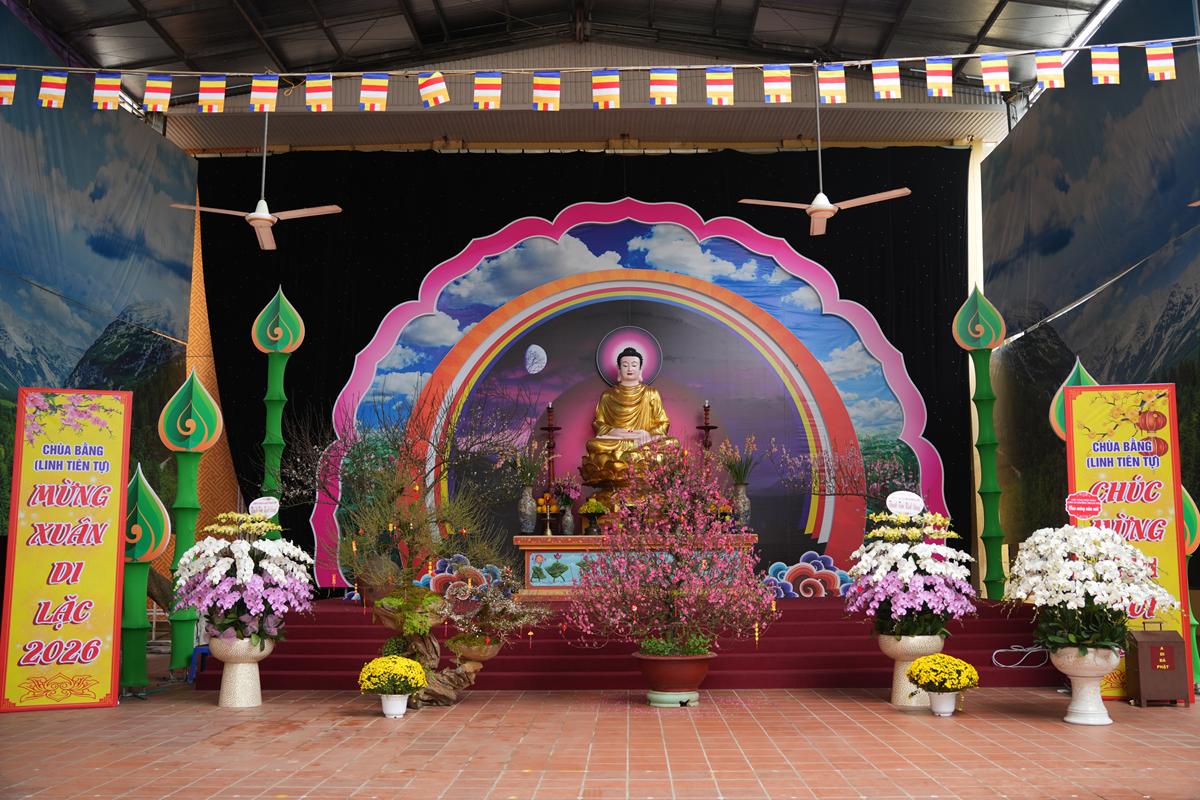 Mỗi độ xuân về, khi đất trời chuyển mình trong hơi thở ấm áp của mùa mới, chùa Bằng lại hiện lên vừa tươi tắn, rộn ràng, vừa giữ trọn nét trang nghiêm vốn có. Đón Xuân Bính Ngọ, khuôn viên chùa được bài trí hài hòa giữa sắc màu thiên nhiên và chiều sâu văn hóa. Trong làn khói hương trầm bảng lảng, cành đào hồng thắm bung nở bên những chậu quất trĩu quả, biểu trưng cho sự sung túc, viên mãn. Cúc vàng, lay-ơn và các loài hoa cổ truyền được sắp đặt tinh tế, tạo nên bức tranh xuân dung dị mà ấm áp, làm dịu lòng người lữ khách ghé thăm.