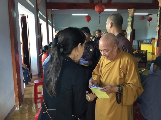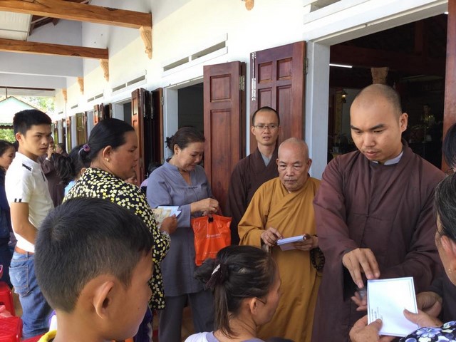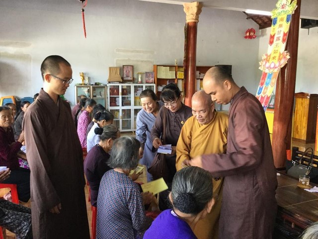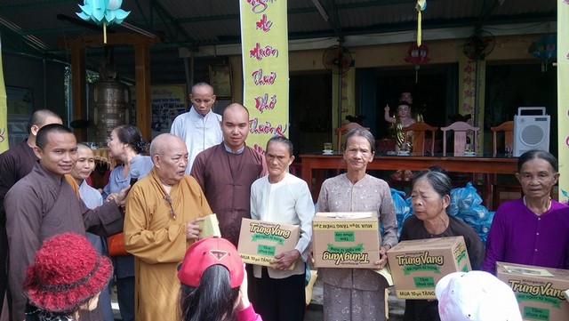 Theo đó, đoàn đã trao tặng 100 phần quà tại chùa Phú Quang (thôn An Phú, xã Tam Phú, TP.Tam Kỳ) và 100 phần quà tại chùa Lộc Tân (xã Tam Tiến, huyện Núi Thành). Mỗi phần quà trị giá 300 nghìn đồng bao gồm 10kg gạo, 1 thùng mì gói, các yếu phẩm và phong bì tiền mặt.