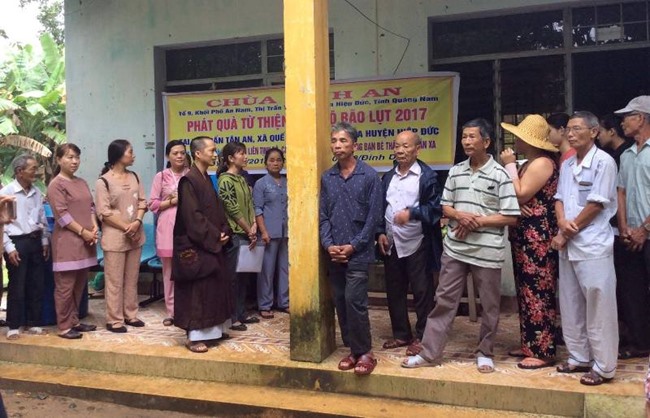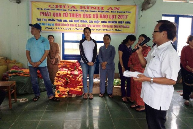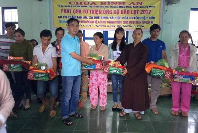 Trang chủ Từ Thiện Xã Hội Từ thiện Chùa Bình An tặng quà bà con bị bão lụt Từ Thiện Xã HộiTừ thiện Chùa Bình An tặng quà bà con bị bão lụt Bởi Phùng Nam - 26 Tháng Mười Một, 2017 Facebook Twitter Google+ Pinterest WhatsApp Email Print Viber Theo đó, đoàn đã trao tặng quà tại 3 địa điểm thuộc xã Quế Bình, xã Hiệp Hòa và thị trấn Tân An (H.Hiệp Đức) tiỉnh Quảng Nam. Tổng trị giá hơn 60 triệu đồng.