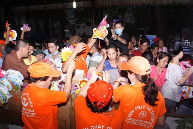 Mỗi phần quà gồm bánh trung thu, lồng đèn, kẹo, sữa trao tận tay cho trẻ em nghèo đang điều trị bệnh tại đây. Những phần quà trung thu đầy ý nghĩa này thể hiện tình cảm, tấm lòng nhân ái của Đại đức Thích Bửu Thành, trụ trì chùa Bửu Châu và các nhà hảo tâm góp phần chia sẻ khó khăn với các cháu thiếu nhi có hoàn cảnh khó khăn, mong các cháu có một cái tết trung thu ấm áp.