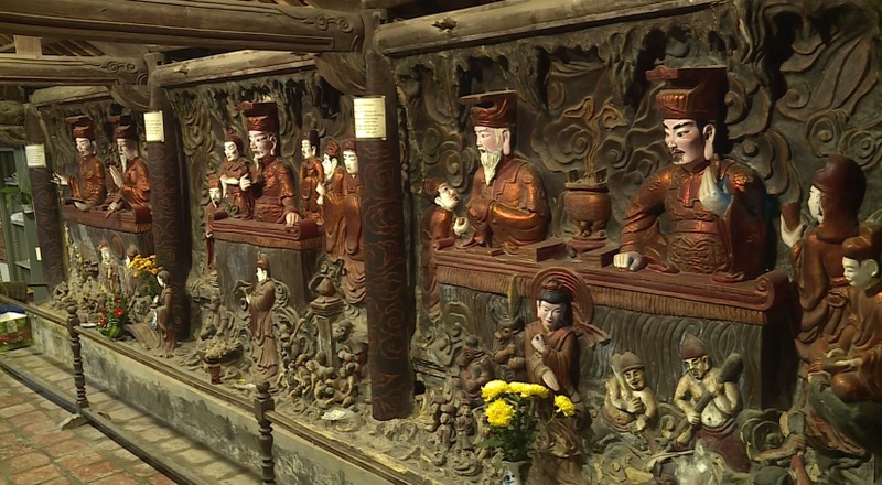 Bên trong Thượng điện và dãy hành lang là hệ thống tượng Phật và Hộ Pháp phong phú bậc nhất, nổi bật là bộ Thập Bát La Hán bằng đất sét mộc – một kiệt tác nghệ thuật dân gian thế kỷ 16.