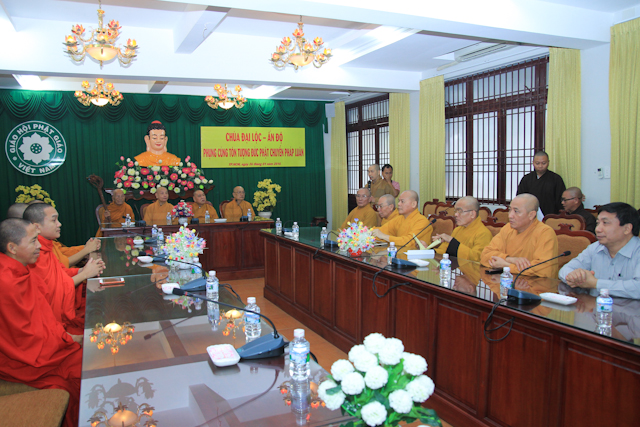 Phát biểu đón tiếp phái đoàn, HT.Thích Thiện Nhơn nhấn mạnh: Giáo hội rất hoan hỷ và ghi nhận trước sự thành công của chùa Đại Lộc trong công tác Phật sự tại Ấn Độ dưới sự dẫn dắt trực tiếp của ĐĐ.Thích Tường Quang.