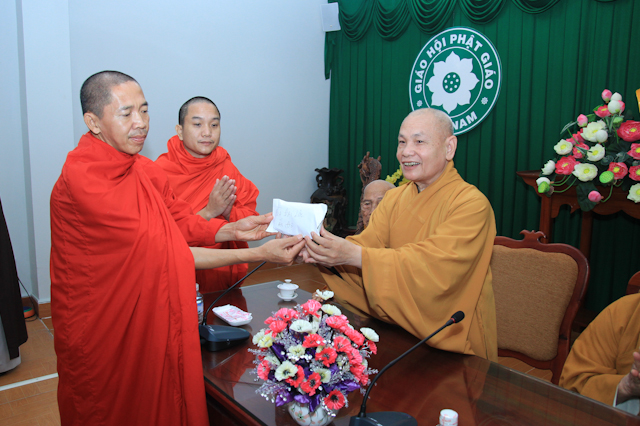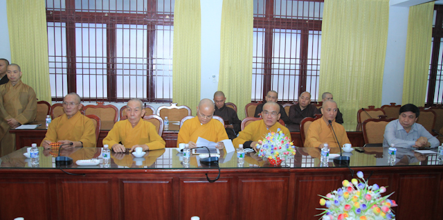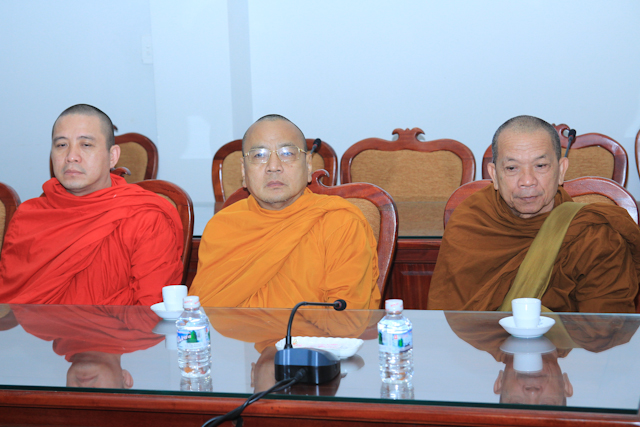 Tiếp phái đoàn có HT.Thích Thiện Nhơn, Chủ tịch HĐTS; HT.Thích Thiện Pháp – Phó Chủ tịch TT HĐTS; HT.Thích Thiện Tánh – Phó Chủ tịch HĐTS cùng chư tôn đức giáo phẩm Ban TT HĐTS, VP 2 TƯGH.