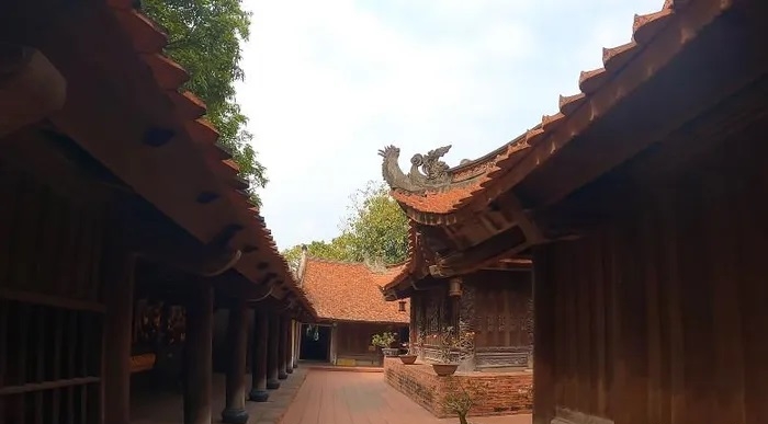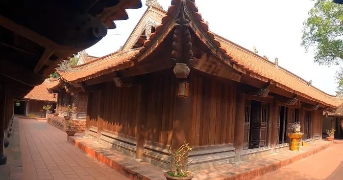 Ngoài ra, ngôi chính điện từ thời Lê có kiến trúc đặc sắc nhất, từ mái lợp ngói mũi hài, cột xà chạm khắc rồng, bệ đá chạm hoa sen đến bộ cửa tám cánh chạm khắc tứ linh, sơn son thếp vàng.