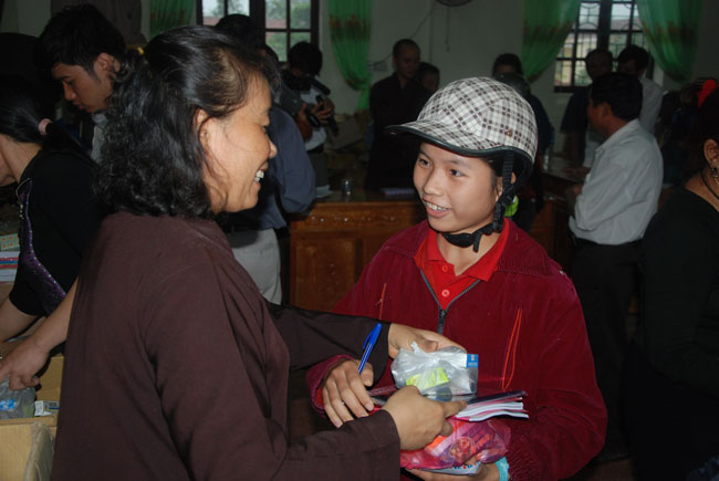 Buổi chiều cùng ngày, kết hợp với chuyến cứu trợ, đoàn chúng tôi cũng đã đến xã Xuân Hồng, huyện Nghi Xuân, Tỉnh Hà Tĩnh thăm gia đình anh Nguyễn Văn Thuật và người hàng xóm của anh là anh Kha để tán thán tinh thần cũng như công đức vô lượng của hai anh khi đã cứu được 6 người trong chiếc xe bị lũ cuốn trôi, đồng thời cũng gửi tặng các anh phần quà trị giá mỗi phần là 2.500.000 đồng tiền mặt.