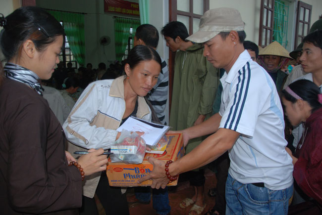 Được sự giúp đỡ nhiệt tình của UBMTTQ và Công an Tỉnh Hà Tĩnh, đoàn đã tìm đến tận nơi những địa chỉ nơi mà cơn lũ ập đến, gây thiệt hại về người và của cho người dân nghèo.