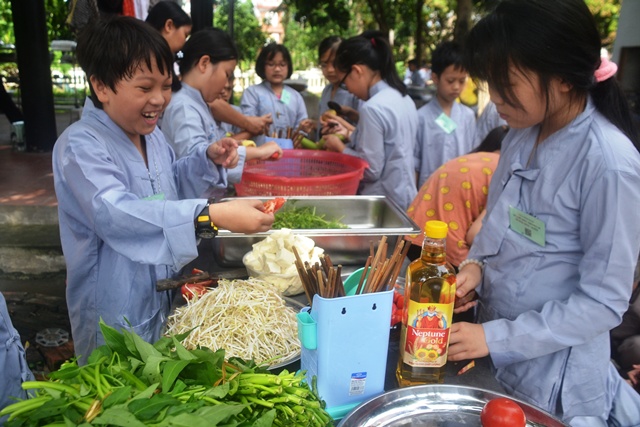 Sáng ngày 22/7/2018 tại khóa tu Mùa hè Hiểu thương lần 10 năm 2018 tại chùa Đình Quán (Hà Nội) các em khóa sinh được thực tập việc phân loại các cây xanh trong vườn. Hết sức thú vị, các em ai cũng hào hứng đi ngắt lá cây về sau đó thuyết trình xem các loại đó dùng để làm thức ăn hay dùng ăn quả…
