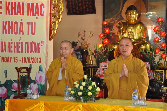 Đúng 9h00′, Ban nghi lễ cung nghinh chư tôn đức quang lâm giảng đường chứng minh cho buổi lễ khai mạc khóa tu “Mùa hè hiểu và thương” năm 2013.