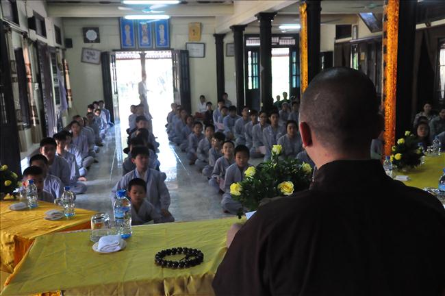 Cuối cùng, Đại đức Thích Chiếu Tuệ đã có đôi lời đạo từ gửi tới các em nhỏ trong khóa tu. Đại đức đã tán thán công đức của Sư Thầy trụ trì Thích Tịnh Quán trong việc duy trì và phát triển những khóa tu dành cho tuổi trẻ trong nhiều năm nay, đó là một việc làm thiết thực thể hiện sự quan tâm của Phật giáo với tuổi trẻ hiện nay. Đồng thời, Đại đức mong rằng tất cả các em nhỏ hãy tranh thủ 5 ngày tu tập để sống một cuộc sống bổ ích, vui tươi và đầy an lành nơi chốn thiền môn.