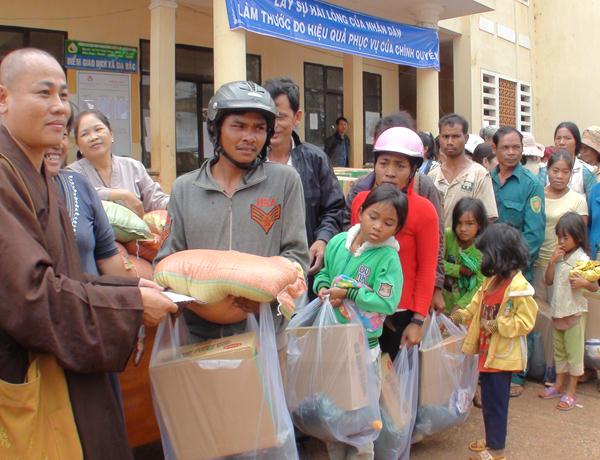 Chính vì vậy, những món quà của chư tôn thiền đức, bà con phật tử trong ban từ thiện Phật giáo, hôm nay đến tận nơi, trao tận tay cùng với những lời thăm hỏi sức khỏe ân cần, san sẻ thân tình … sẽ là nguồn động viên rất lớn giúp bà con nơi đây một phần nào đỡ vất vả hơn trong mùa giáp hạt, hăng say lao động sản xuất, vượt khó vươn lên trong tình thân thương của toàn xã hội .