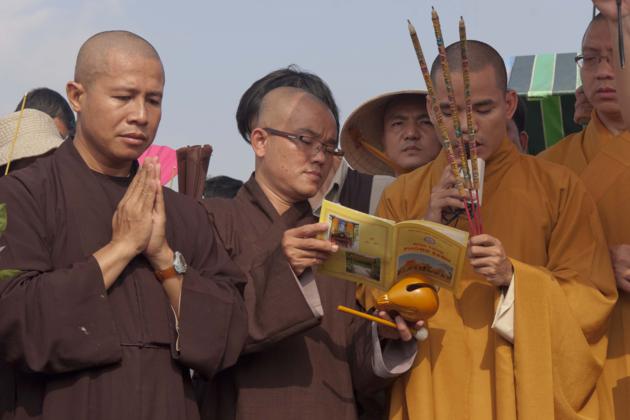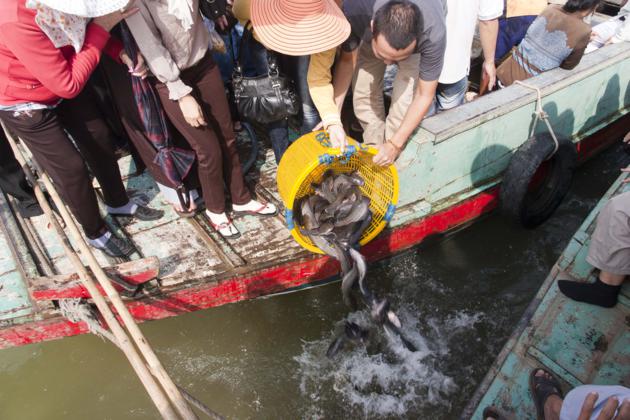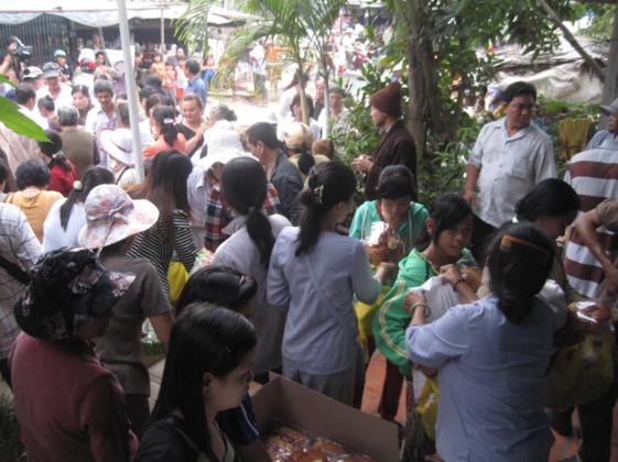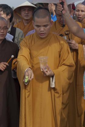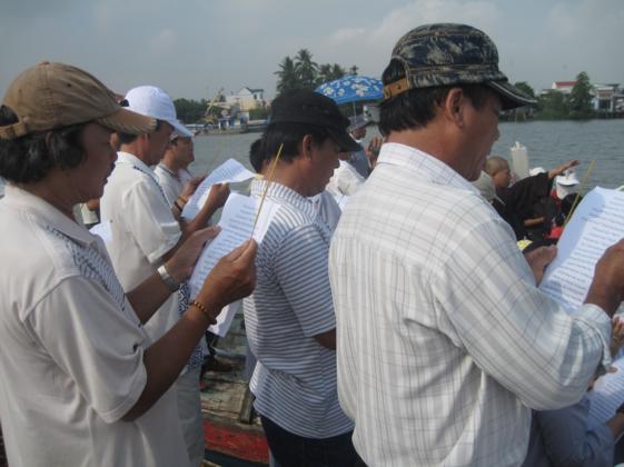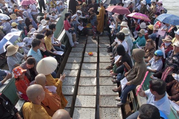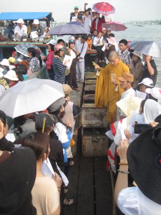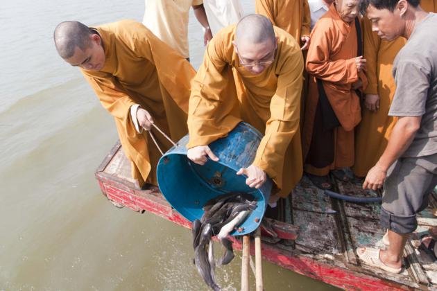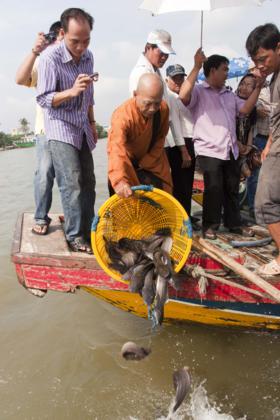 Ngày 25/3, cùng với sự tham dự của quý thầy các chùa địa phương TP. Long Xuyên, phái đoàn đi trên 4 chiếc ghe, mang theo 3 tấn cá các loại như cá trê, cá tra, các lóc và ốc, thả mình giữa dòng sông Long Xuyên thật vui tươi. Khi ra đến giữa sông, phái đoàn đã có thời tụng kinh cầu nguyện phóng sanh cho các loài cá – ốc, khiến chúng nhận được những tâm niệm quy y an lành. Mong rằng các loài chúng sanh thả ra sẽ được tự do, sống với thế giới tự nhiên, đắc an lạc. Nhờ năng lực tụng kinh cầu nguyện của đại chúng, chúng sanh cá – ốc được quy y, có được cuộc sống tốt đẹp hơn. Theo nhân duyên, chắc chắn kiếp sau chúng sẽ được tái sanh làm người, và được gặp Phật pháp, tu hành giác ngộ, giải thoát.