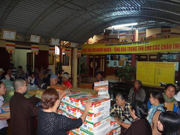 Chiều hôm nay, ngày 30/9/2017, tại Tổ đình ;Linh Quang ( Tp Đà Lạt), TT. Thích Thanh Tân, phó TT. BTS GHPGVN tỉnh Lâm Đồng – Viện chủ Tổ Đình Linh Quang ( Đà Lạt ) đã kết hợp với HT. Thích Hạnh Ngộ, Trưởng BTS GHPGVN quận 4, viện chủ chùa Đức Quang Tp Hồ Chí Minh cùng ban từ thiện đã thăm hỏi và trao tặng 200 phần quà, mỗi phần gồm : 200.000 đồng tiền mặt, 10 kg gạo, 1 thùng mì ăn liền cùng nhiều vật phẩm khác, trị giá 400.000 đồng / phần, cho bà con nghèo có hoàn cảnh khó khăn trên địa bàn phường 6 Tp Đà Lạt .