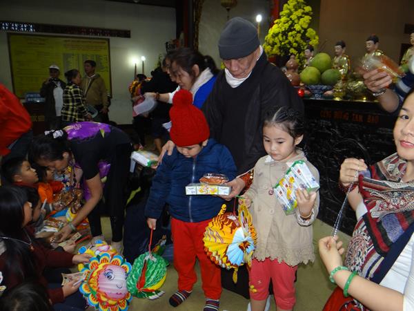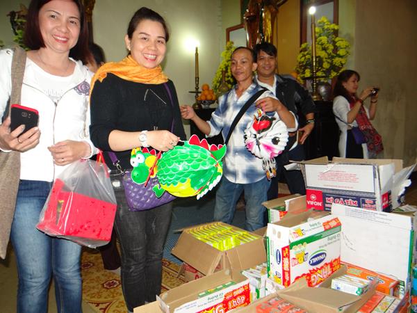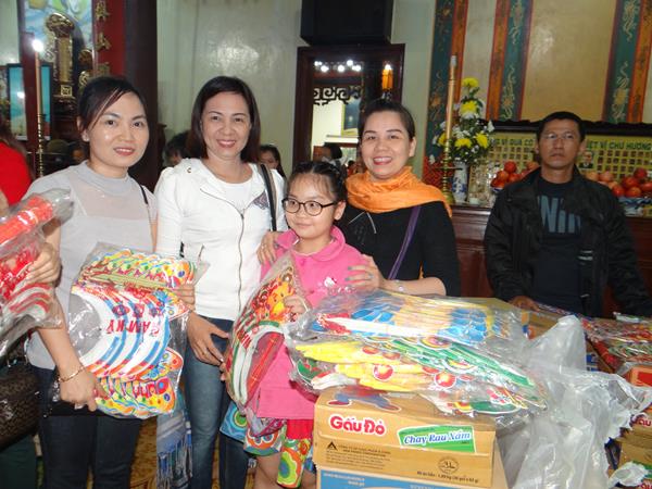 Ngoài ra, ban từ thiện cũng đã trao tặng 300 phần quà gồm : lồng đèn, bánh trung thu , sửa , bánh , kẹo v.v. cho các em thiếu nhi có hoàn cảnh khó khăn, có thêm điều kiện vui đón tết trung thu 2017 .