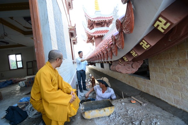 TT. TS: Thích Nhật Từ chỉ đạo thực hiện các hoa văn họa tiết đang được hoàn thiện dần.