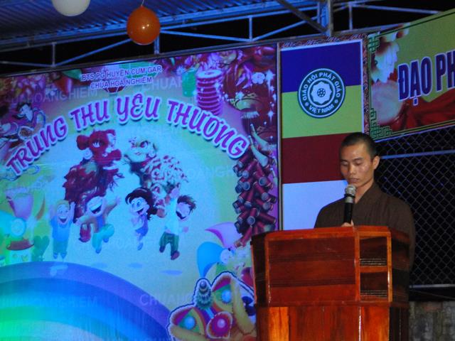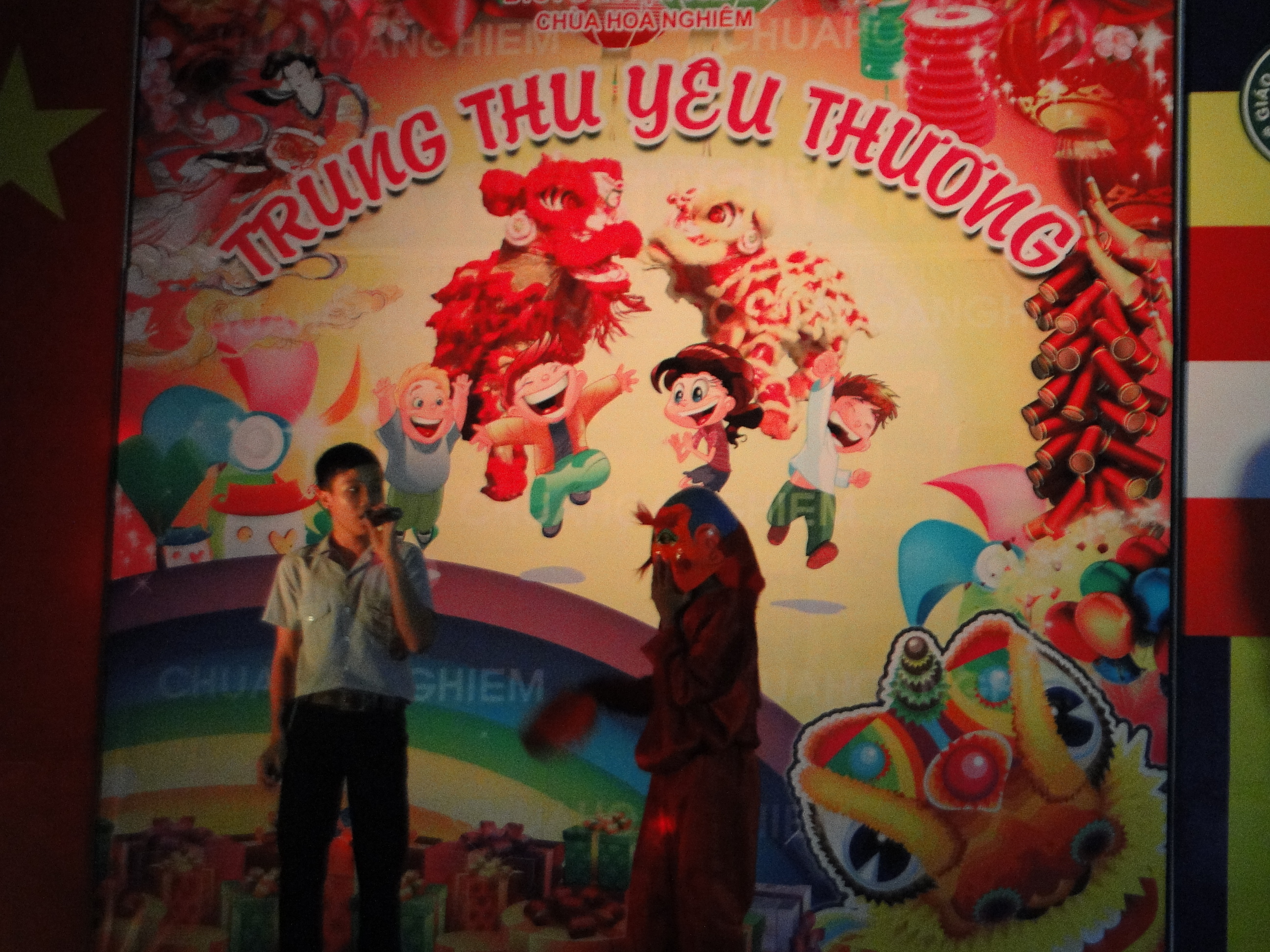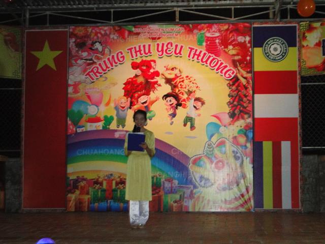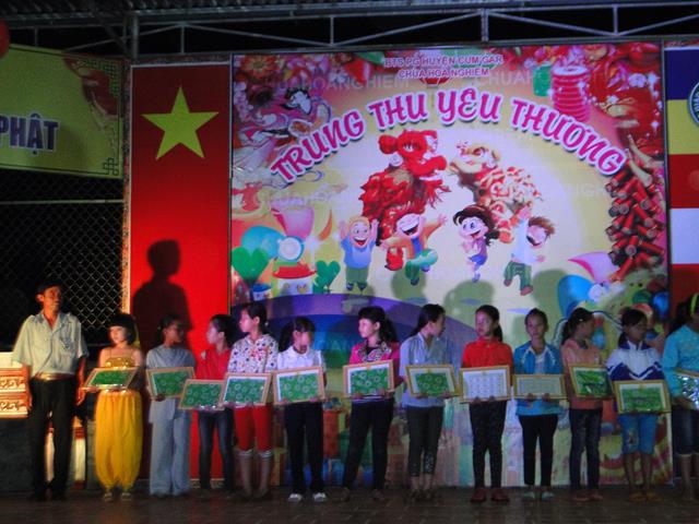 Hòa Trong không khí hân hoan, nhôn nhịp của mùa trung thu năm nay, lúc 19h00 ngày rằm,tại chùa Hoa Nghiêm đã tổ chức đêm “Trung Thu Yêu Thương”. Mở đầu là chương trình văn nghệ chào mừng do GĐPT chùa Hoa Nghiêm thể hiện khá sôi động, và trước khi phá cỗ trung thu , là chương trình phát thưởng cho những học sinh Phật tử đạt danh hiệu cao trong năm học vừa qua.
