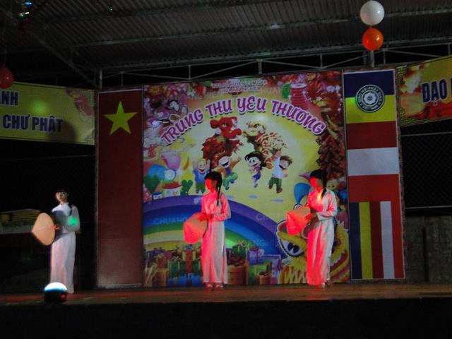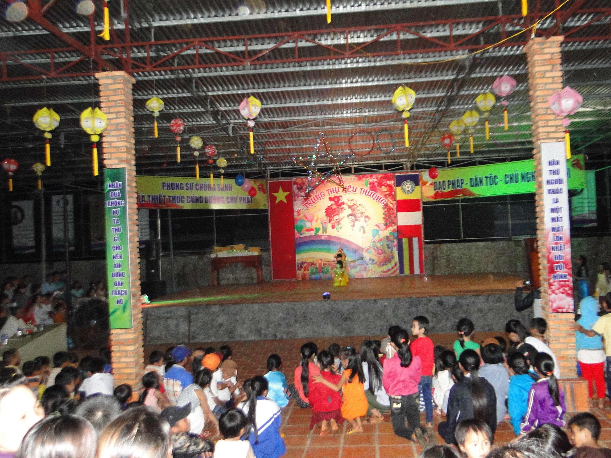 Cũng nằm trong chương trình “Trung Thu Yêu Thương”, ngày 14/8 tại ban tổ chức cũng đã cùng vui Trung Thu cho các cháu Phật tử đồng bào dân tộc thiểu số . CHƯƠNG trình có sự tham gia nhiệt tình của chi đoàn tình nguyện Sở Nông Nghiệp Và Phát Triển Nông Thôn tỉnh ĐăkLăk, đã để lại trong lòng mọi người niềm hân hoan hỉ lạc .