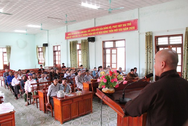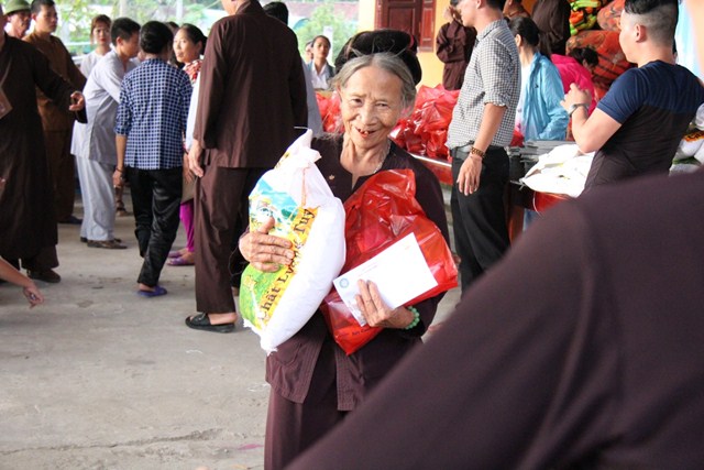 Buổi chiều cùng ngày, đoàn thiện nguyện đã kết hợp cùng với Chùa Giai Lam trao tặng 200 suất quà cho bà con nhân Phật tử xã Thạch Tân, mỗi suất quà trị giá 500.000 VNĐ, bao gồm quà pháp bảo, tiền mặt, 10kg gạo, 2 lít dầu ăn, đường, bột canh.