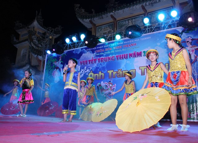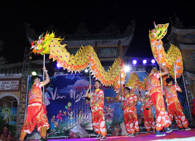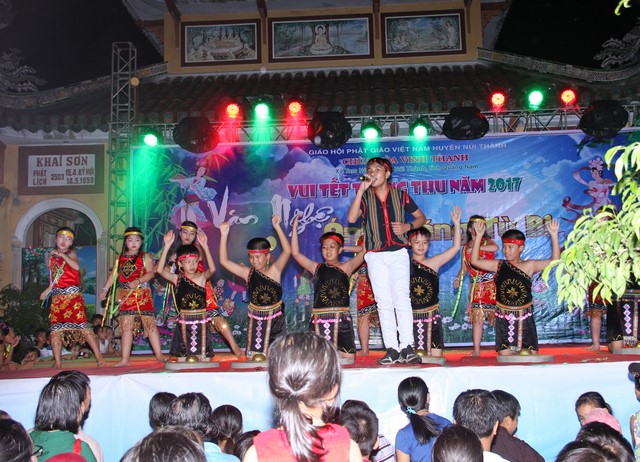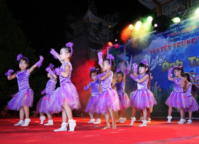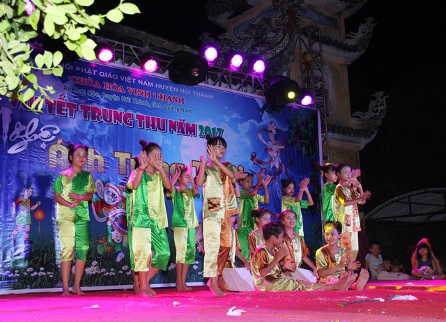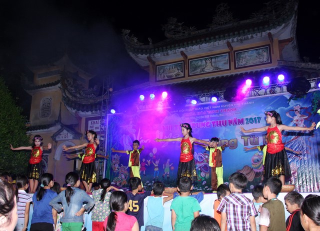 Trong tiết trời giao mùa dịu nhẹ, hơn 700 em nhỏ về chùa hòa vào không khí vui nhộn, cùng chia sẻ bánh kẹo và tham gia chương trình giao lưu văn nghệ với nhiều tiết mục hát múa, ảo thuật đặc sắc, múa lân sư rồng, phá cỗ… đã mang đến một buổi tối trung thu đầy ắp niềm vui và giòn giã tiếng cười trong tình thương của những người con Phật tại ngôi chùa quê.
