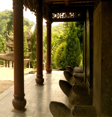 Trên đường từ bến Yến vào bến Trò, người ta dừng thuyền ở đền Trình (có nghĩa là nơi "trình diện" với thần linh) trên núi Ngũ Nhạc. Đây là đền thờ một vị thần núi.