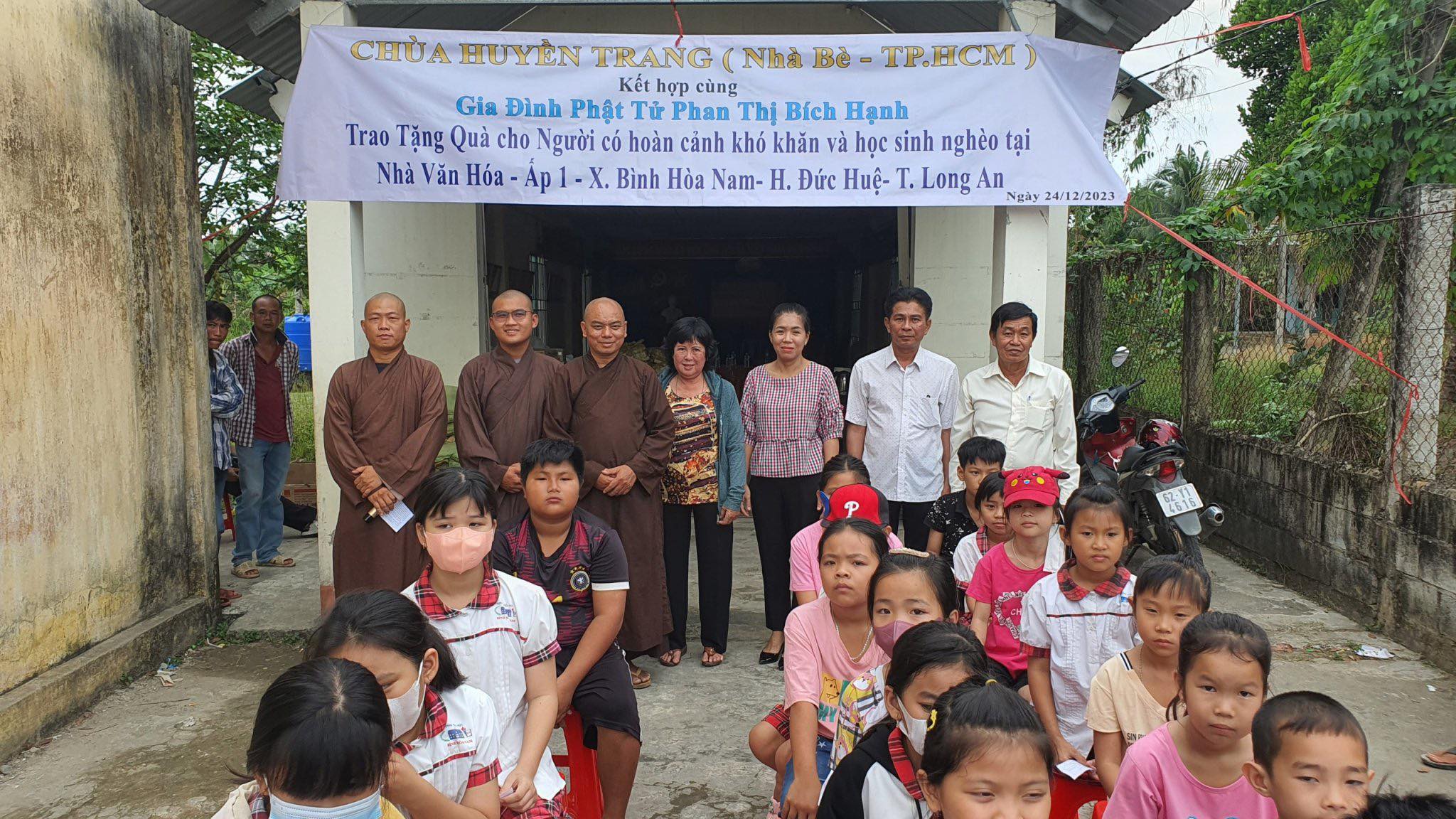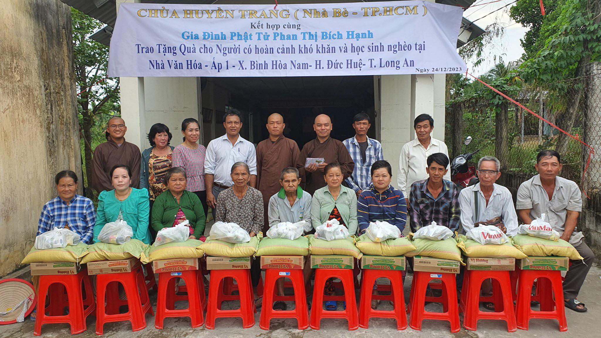 Ngày 24 tháng 12 năm 2023 chùa Huyền Trang( Nhà Bè -TP. Hồ Chí Minh ) kết hợp cùng Gia Đình Phật tử Phan Thị Bích Hạnh đến Nhà Văn Hóa – ấp 1- X. Bình Hòa Nam- H. Đức Huệ- T. Long An Trao tặng 50 phần quà cho Người có hoàn cảnh khó khăn.