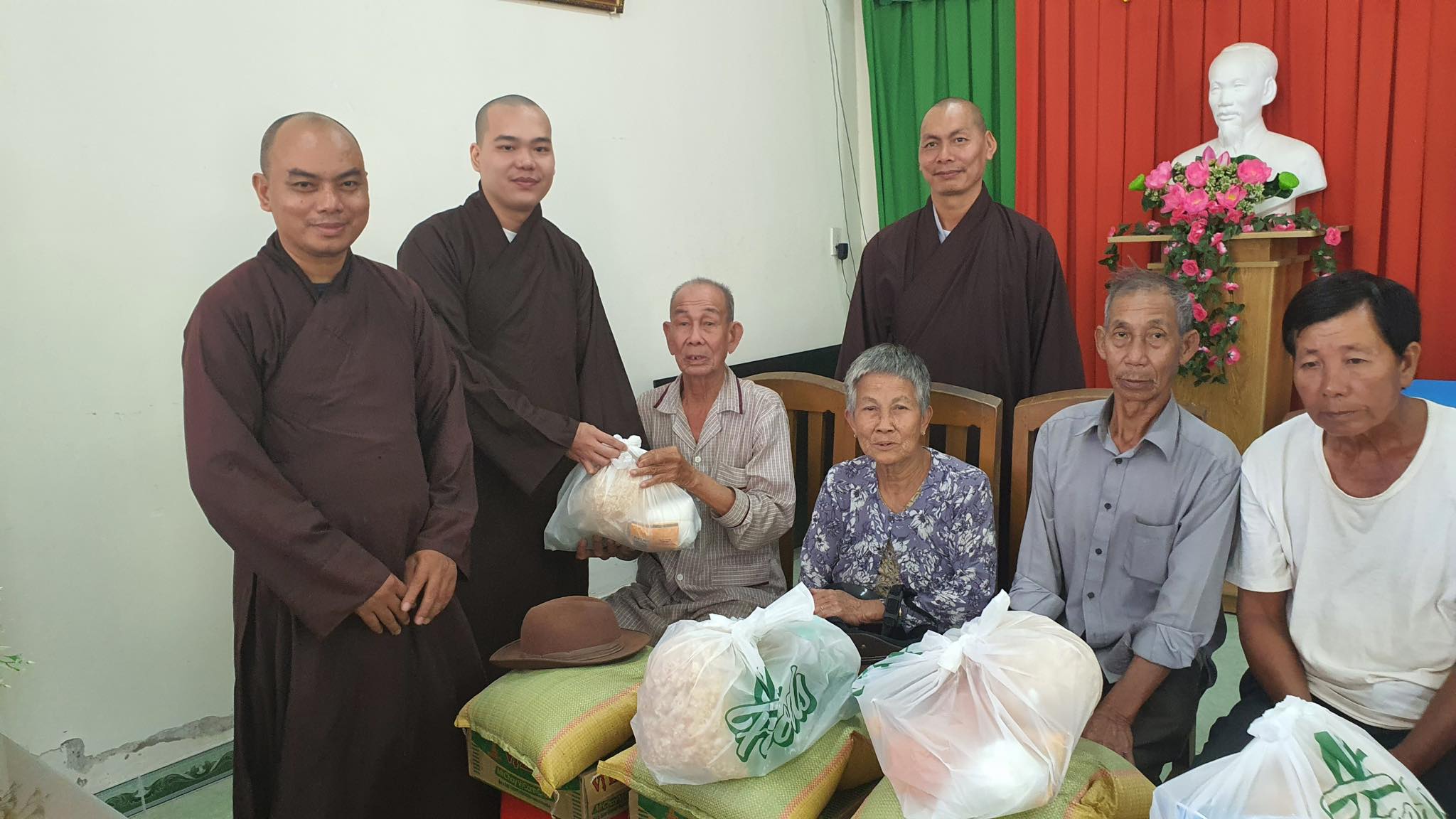 Tham dự buổi trao quà có Đại Đức Thích Giác Tiến- Ủy viên Ban trị sự Phật giáo H. Nhà Bè , Tri sự chùa Huyền Trang ; Đại đức Thích Pháp Đạo, chùa Huyền Trang ; Đại đức Thích Pháp Thông, Tịnh thất An Lạc Hạnh – Gò Công Đông, tỉnh Tiền Giang.