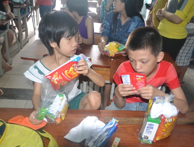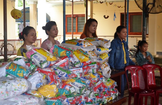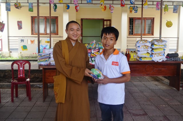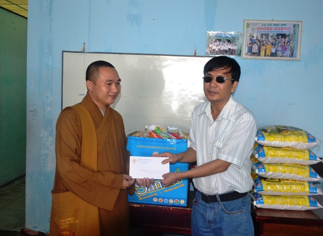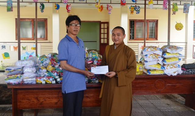 Theo đó, đoàn từ thiện trao tặng gạo, bánh kẹo, sữa, các nhu yếu phẩm, tiền mặt và 130 suất ăn trưa tại 2 cơ sở.