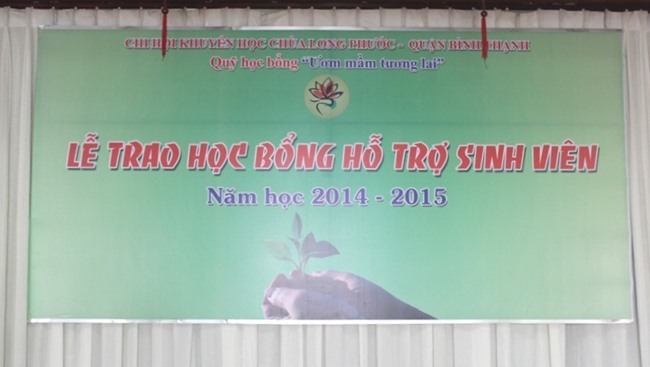 Buổi lễ đã diễn ra trong không khí trang trọng và đầy sự sẻ chia với sự tham dự của Ni Sư Thích Nữ Huệ Dâng, trụ trì chùa Long Phước, đại diện chi hội khuyến học Phường 12, chi hội khuyến học chùa Long Phước, quý Mạnh Thường Quân, nhóm Thiện Nguyện Bước Chân Sen và 50 sinh viên có tên trong danh sách nhận học bổng.