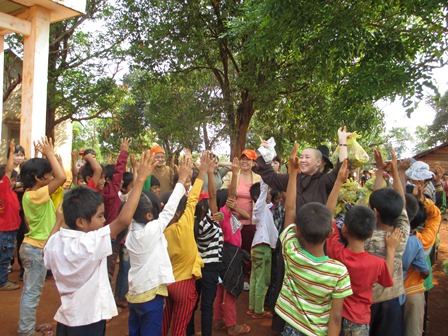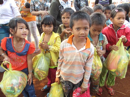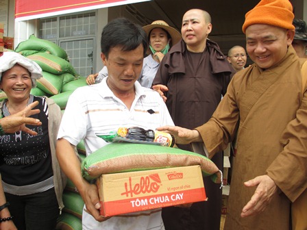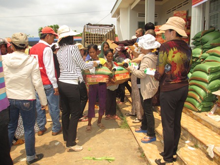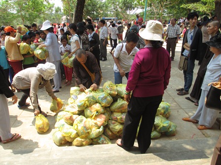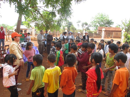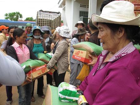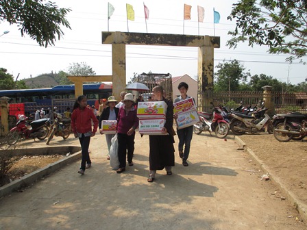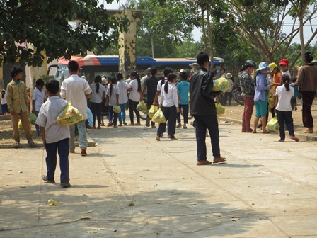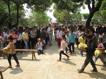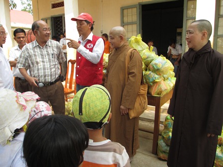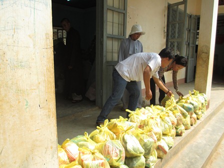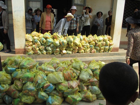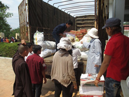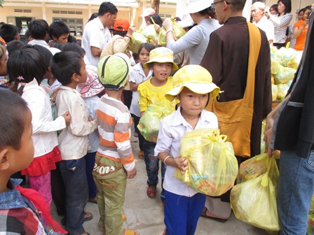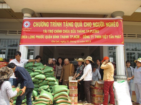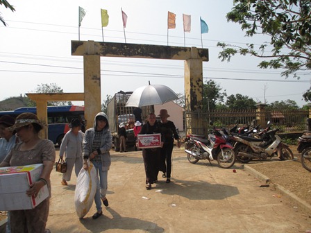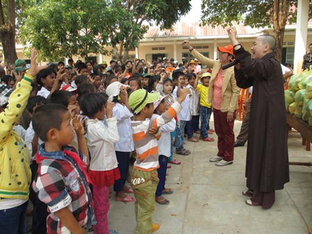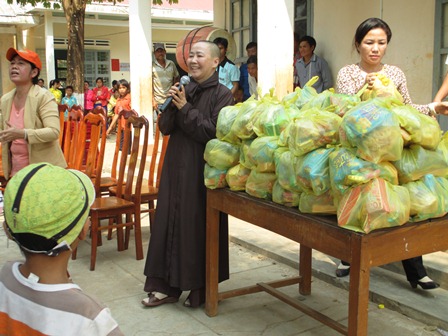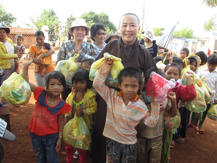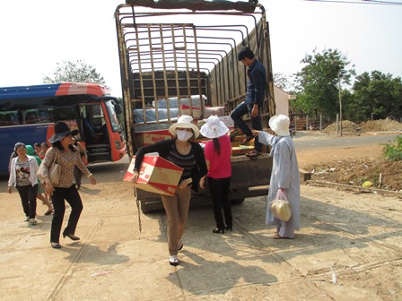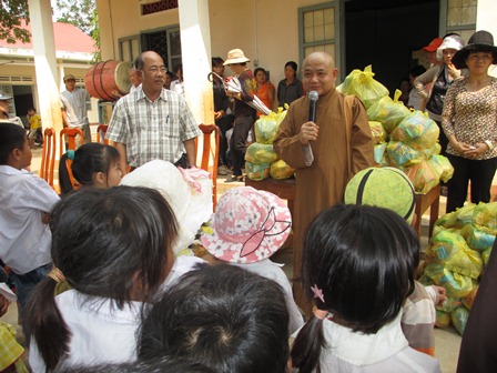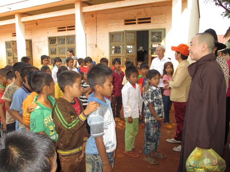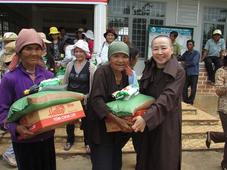 Trở về đất mẹ, Ni sư Huệ Dâng và đoàn từ thiện đã trao 500 phần qùa tặng cho trẻ em tại trường học Phù Đổng (Xã Gia Bút – Huyện Chư Prông), sau đó đoàn đến xã Ia Puch tặng 200 phần qùa cho người lớn.
