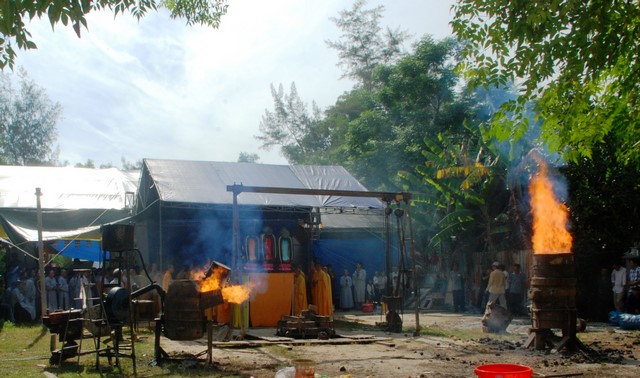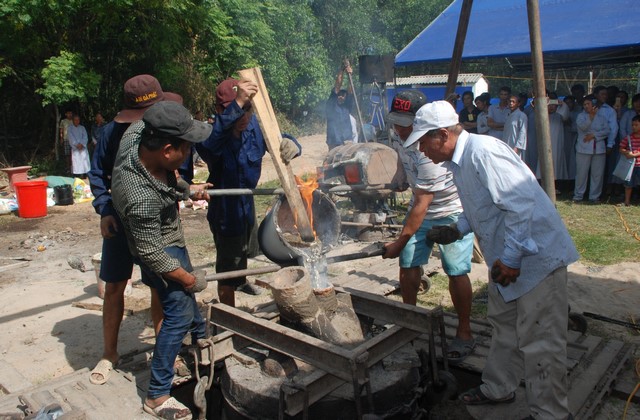 Tại buổi lễ chư tôn đức chứng minh đã niêm hương, bạch Phật, sái tịnh, trì chú gia trì, chú nguyện rót đồng đúc đại hồng chung.