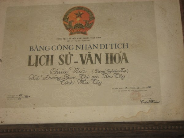 Tháng 5-2006, Thành hội Phật giáo TP.HCM kết hợp với Trung tâm Sách kỷ lục Việt Nam công bố 10 kỷ lục văn hóa Phật giáo Việt Nam, trong đó có Chùa Mía là nơi lưu giữ nhiều tượng nghệ thuật nhất nước ta.