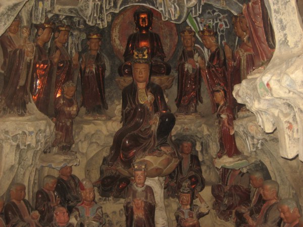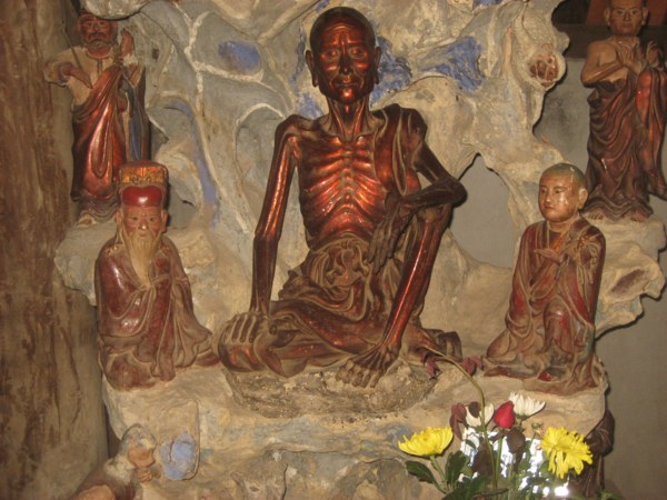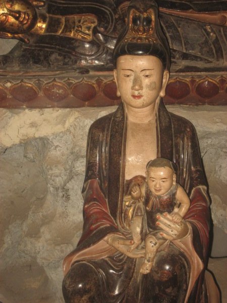 Tại chùa Thượng có các động bằng đất đắp, với nhiều tượng. Trong đó có tượng Phật Thích Ca nhập Niết bàn, tượng Tuyết Sơn và đặc biệt là tượng Quan Âm Tống Tử cao 0,76 m – một tuyệt tác của nghệ thuật chế tác tượng Phật giáo nước ta.