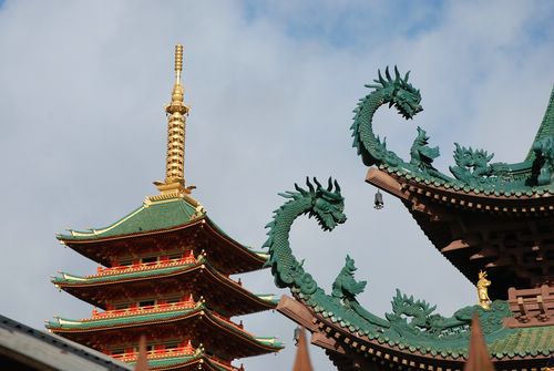 Ngôi Chánh Điện có hai tầng, Đại Hùng Bửu Điện, Đại Bi Điện.