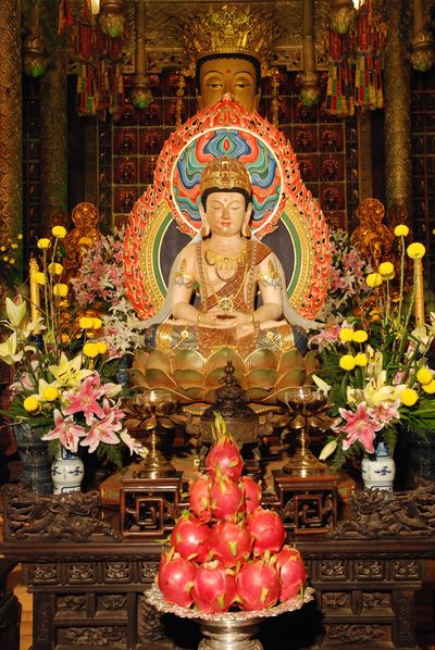Chánh điện chùa bố trí theo một hình thức đơn giản của mạn-đà-la (maṇḍala). Đó là một vòng tròn, được tượng trưng như một đóa hoa sen nở trọn, và vòng tròn này là căn bản vũ trụ luận của Mật giáo. Thông thường, có hai bộ mạn-đà-la. Kim cang giới mạn-đà-la (vajradhātu-maṇḍala) biểu tượng cho trí tuệ sở chứng của Phật. Thai tạng giới mạn-đà-la (garbhadhātu-maṇḍala) biểu tượng cho phương tiện độ sinh của Ngài. Mỗi mạn-đà-la đều dựa trên một số chủ điểm tư tưởng của Đại thừa giáo.