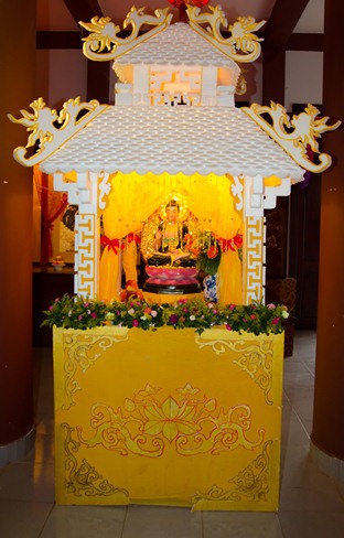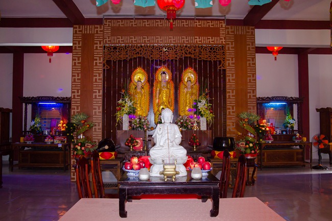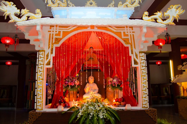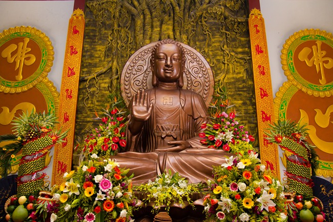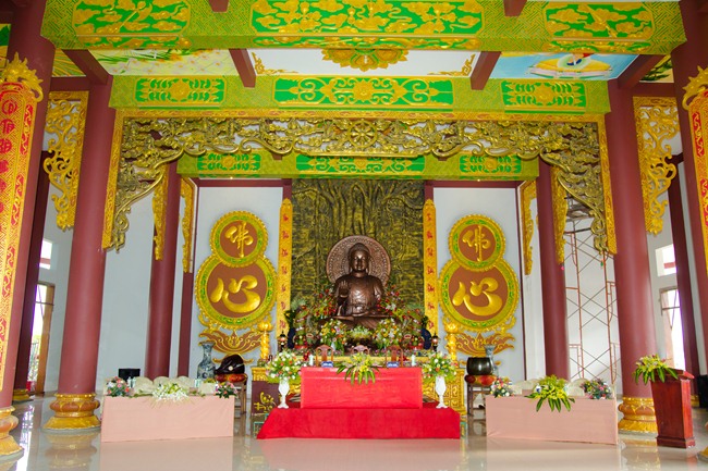 Kim thân tôn tượng Phật Thích Ca Mâu Ni bằng đồng, cao 3,2m, nặng 5 tấn được tôn thờ tại chánh điện chùa Nam Thiên (ảnh: Đăng Huy)
