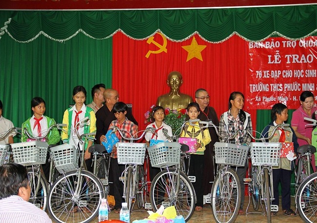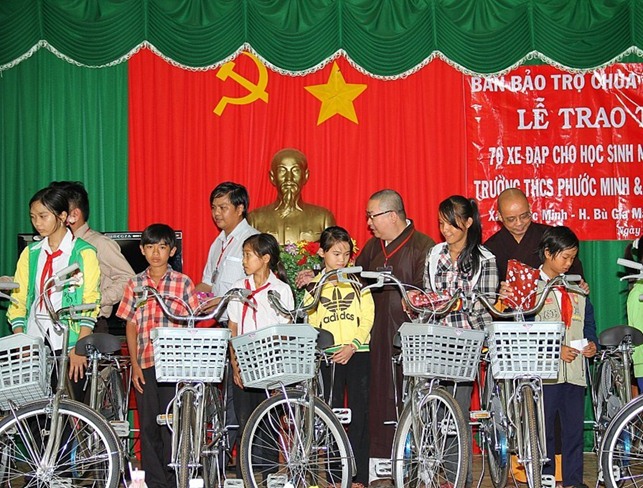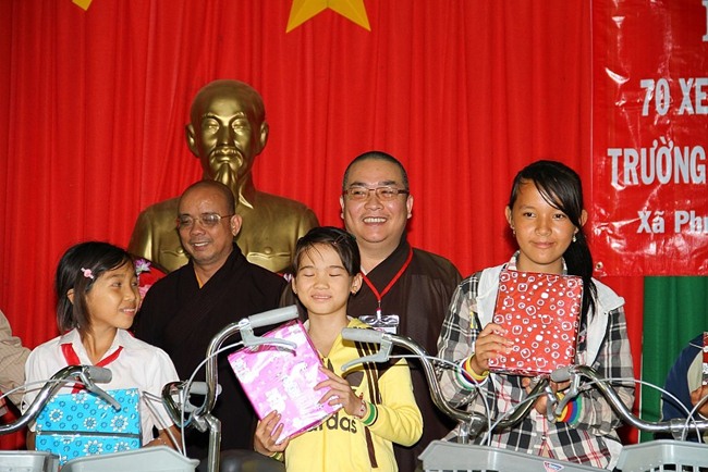 Tại lễ trao tặng, Thượng tọa Thích Nhuận Quang – Trụ trì chùa Nguyên Ngộ đại diện cho nhà tài trợ đã có lời phát biểu động viên tinh thần học tập của các em, đồng thời trao tặng 70 chiếc xe đạp chất lượng cao ( trị giá 1.115.000 đồng /1 chiếc ) cho 70 em học sinh. Các em được nhận xe đạp trong đợt này là các em học sinh nghèo hiếu học, có học lực khá giỏi.