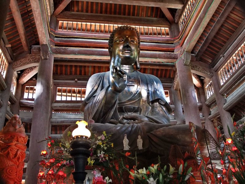 Đến với chùa Non Nước, Phật tử và du khách còn có dịp chiêm bái pho tượng Phật tổ Như Lai được đúc bằng đồng liền khối. Pho tượng độc đáo này có trọng lượng 30 tấn, chiều cao hơn 8m (kể cả bệ đá), được đánh giá là một trong những pho tượng Phật liền khối lớn ở khu vực Đông Nam Á.