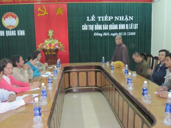 Vào lúc 13h30 ngày 01/11/2010 đoàn đến tại trụ sở của UBMTTQVN tỉnh Quảng Bình, tiếp đoàn có ông Chủ tịch UBMTTQVN tỉnh Quảng Bình. Sau đó đoàn được đưa đi thăm và tặng quà cho đồng bào tại xã Châu Hóa, huyện Tuyên Hóa, tỉnh Quảng Bình, tại đây đoàn đã thăm và tặng 300 xuất quà cho đồng bào đang gặp khó khăn do lũ lụt vừa qua.