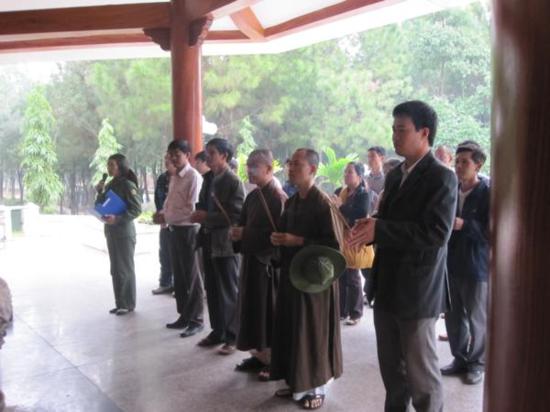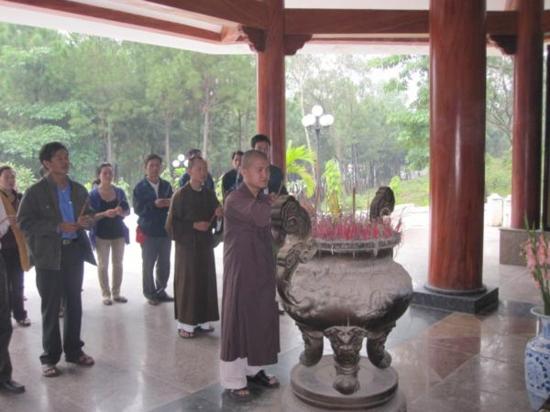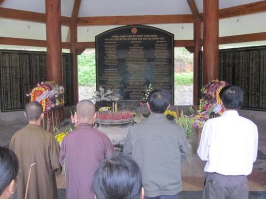 Sau đó đoàn đến dâng hương tưởng niệm tại điểm di tích lịch sử ngã bã Đồng Lộc, thắp nhang cho 10 cô gái thanh niên xong phong đã hy sinh anh dũng tại ngã ba Đồng Lộc tỉnh Hà Tĩnh.