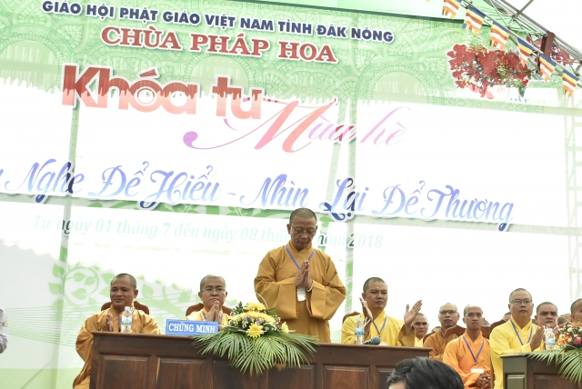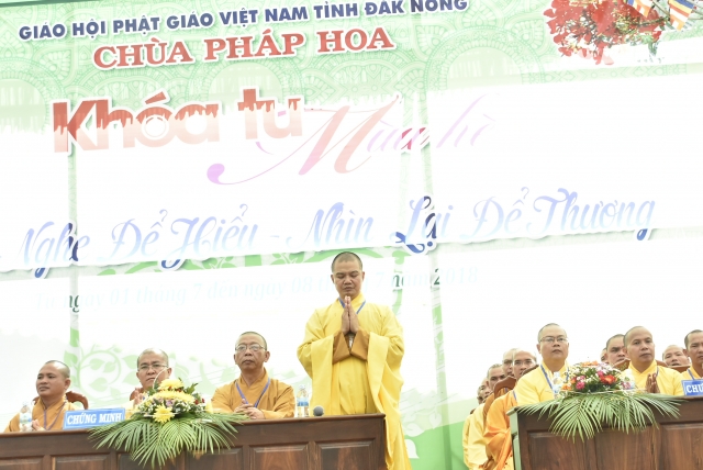 Cuối buổi lễ Khai mạc, Thượng tọa Trưởng BTS PG tỉnh Đắk Nông, thay lời chư Tôn đức Chứng minh, tán thán công đức của Đại đức Trưởng BTC cùng ban điều hành đã mở ra một khóa tu thật ý nghĩa. Đồng thời có lời sách tấn đến toàn thể trại sinh, chúc tất cả có một khóa tu mùa hè đầy ý nghĩa. Chúc khóa tu thành công tốt đẹp.