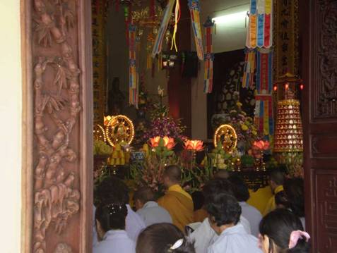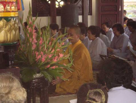 Trong những ngày này, các Phật tử gần xa đã vân tập về chùa dự lễ, tụng kinh Dược Sư, thọ trai…. Nhà chùa, Phật tử đã mang những chai nước tinh khiết, đèn…để cúng dường Đức Dược Sư Lưu Ly Quang Như Lai như trong kinh Dược Sư đã dạy: