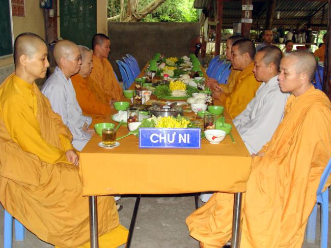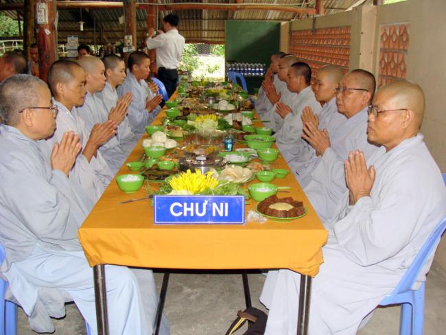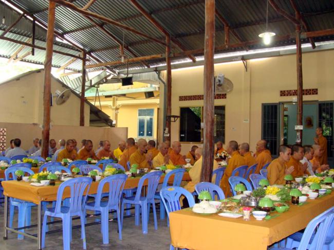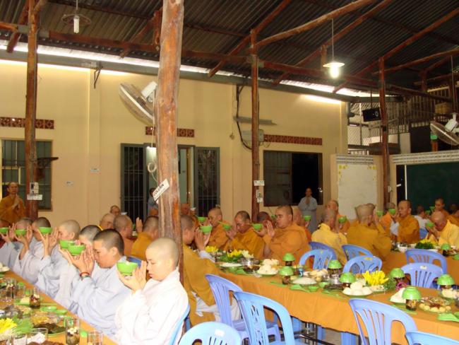 Sau phần nghi thức Chung thất, ĐĐ Thích Tánh Khoan dâng lời tác bạch cúng dường Trai nghi. Nhân tuần chung thất, toàn thể Chư tôn đức Tăng Ni đang hiện diện nhất tâm cầu nguyện Giác linh cố TT Thích Thông Tháisớm cao đăng Phật quốc.