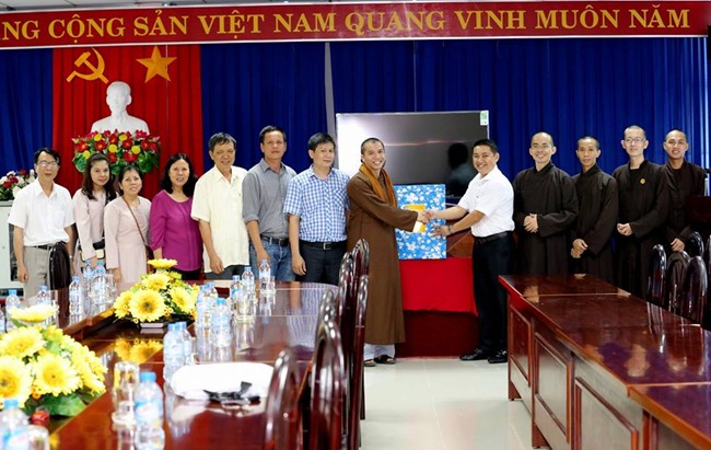 Tiếp đến, đai diện cho chùa và Hội Từ Thiện Phật Quang đã trao những phần quà thể hiện sự quan tâm sâu sắc của chùa Phật Quang nói riêng, cũng như của Giáo hội nói chung theo phương châm “Đạo Phật đồng hành cùng dân tộc”, đã nói lên tinh thần nhập thế của đạo Phật, tức tu theo đạo Phật tuy hướng đến mục tiêu giác ngộ, giải thoát, nhưng không lánh đời mà luôn dấn thân phụng sự cho cuộc đời, cho con người trên tinh thần từ bi, vô ngã, vị tha để xây dựng thế giới này ngày càng tốt đẹp hơn.